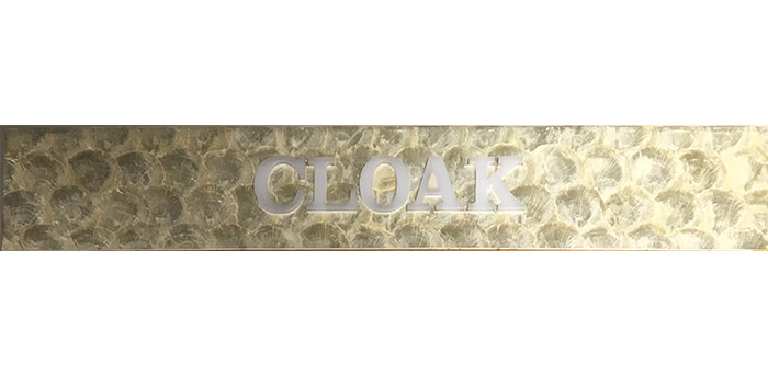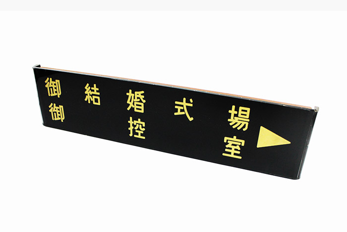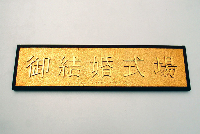 - ホテルオークラ東京らしい黒地に金色の文字。旧本館内で使われていた結婚式場関連のサインプレートを置物にしました。