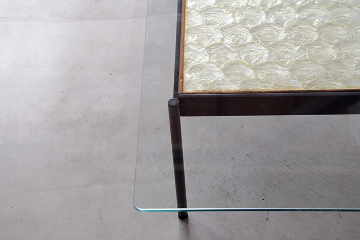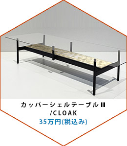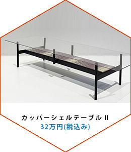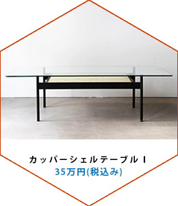 - 旧本館1階CLOAKなどにあったカッパーシェルを使ってコーヒーテーブルに加工しました。
