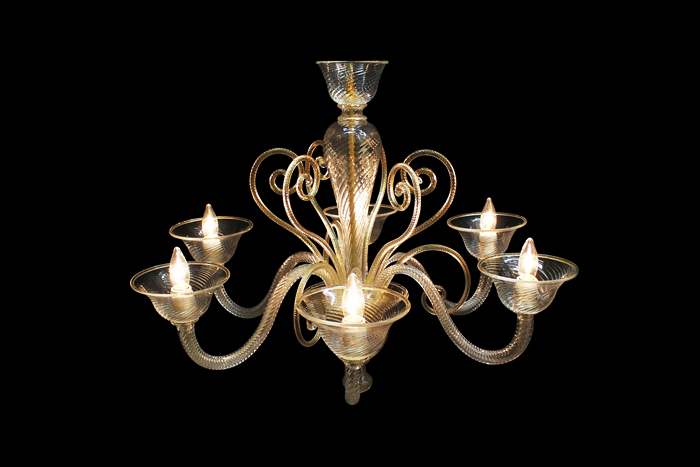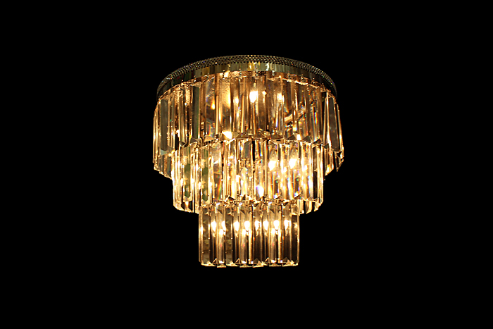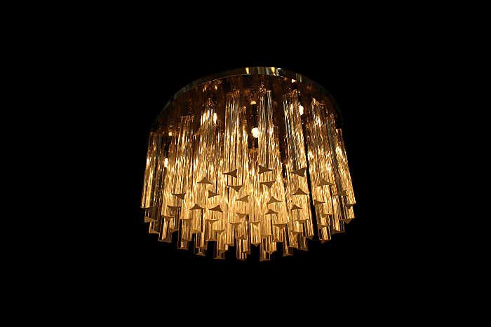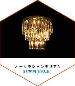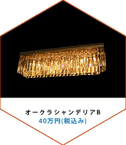 - 旧本館2階宴会場「オークルーム」のシャンデリアパーツを使って家庭用シャンデリアに加工しました。
