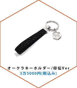 - 旧本館11階、中国料理「チャイニーズテーブル スターライト」のシャンデリアパーツを使ってキーホルダーを作りました。印伝製特注柄と合わせて作りました。