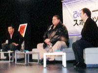 青島:谷川さん、改めてあの試合の質というか、一体どんな試合だったのかっていうのを振り返ってみていかがですか。 谷川:横綱に声を掛けたときから試合が終わるまでが、すごい映画を見てるようなドラマだったので、感無量でしたね。どんな試合になるかわからなかったんですよ。本当に僕は紙一重だと思ってたので。先にパンチが当たった方が倒れるという。まあ、神様がね、どういう結末を描いてるんだろうなと。要するに,横綱が勝って子どもたちがリングに上がって感動的になるのか、それとももっと厳しい現実となるのか。あるいは凡戦になる可能性もあったと思うんですよ。お互いがヘロヘロになって、「なーんだ」っていう感じになっちゃうのかなっていう。でも僕はすごくいい、格闘技のリアルさが見えて、なおかつ横綱が本当に勇気を持って、厳しい思いをして、最後にはおもしろかったっていう物語を見せてもらったなっていう感じがしましたね。さすがやっぱり横綱ですね。これだけの濃いドラマを見せてくれるファイターっていうのはなかなかいないですね。普通の選手にはできない重さとか、何かアピールするものとか、いろいろなものが見えてくるんですよね。だからやっぱり、視聴率もよかったと思うんですよね。伝わるものがあったと思うんです。今回ばかりはね、ボブ・サップはけっこう悪役でしたね。 青島:でもその日、大晦日だったじゃないですか。眠れましたか。新年はどんなふうに迎えられたんですか。 曙:とりあえずですね、記者会見とか終わってから頭のスキャンをしまして。医者からあんまり寝ないようにしろって言われたんです。夜中3時ぐらいまで、子どもがはしゃいだりしていて。こっちは眠たくて体が痛くて。もう10トントラックに轢かれたような感じなのに、寝かせてくれないんですよ。全然もう、そのころはわからなくて。ハワイの友だちが何人か来ましたから、その人たちがみんな部屋に集まって、僕だけ水を飲みながら試合の話をしたりしてたんですけど。 青島:もう一つ、K-1ファイターになるときに言われたのが、子どもさんが相撲をやられているときは小さかったので、ぜひ戦う姿を見せたいんだっていうこともおっしゃっていましたよね。本当に目の前で戦うお父さんを見せたわけですけど、その辺はいかがでしたか。子どもさんの前で戦ってっていうのは。 曙:本当によかったですよ。これだけ好き勝手やってる男の人は、俺ぐらいしかいないんじゃないですか。 谷川:いいっすよね。まだ青春っていうか、戦っているっていう感じで。 青島:私もその気持ちはわかりますね。私も昔野球選手だったんですけどね、子どもはまだ小さかったですからね、彼らが大きくなったときには野球を辞めてましたんでね、そういう意味では。 曙:現役のときは、若いうちに結婚する人がいると、早いなって思ってましたけど。引退したら、もうちょっと早く結婚してたらって思うんですよね、子どもが小ちゃいから。 青島:うちももうお姉ちゃんは中学生ぐらいですけどね、小学校の低学年ぐらいのときに、こんな話で申し訳ないんですけど父親参観に行ったら、「あ、ビール飲んでるおじちゃんだ」とか言われましたね。 谷川:ああ。 青島:その頃、CMでスーパードライを毎日飲んでましたからね。 会場:笑い 曙:私もありました。うちの娘が幼稚園に行き始めたんですけど、お父さんは何をしてるかっていう質問で、娘は「うちのパパは、朝1時間ぐらいどっか仕事行って帰ってきて、家で一日中テレビ見てます」って。要するに、その1時間っていうのは、部屋に行って稽古を指導して、帰ってきて何もすることがなくて家でテレビを見ている。 青島:なるほど、なるほど。 曙:それを聞いたときに、これはダメだなと思いました。 青島:さあ、いろいろお話を伺ってきましたけども、本当に皆さん、静かに聞いていらっしゃいますけども、大丈夫ですかこんな感じで。ちょっとブレイクっていうわけじゃないですけど、試合の話を伺いましたので・・・私、詳しくは知らないんですけど、曙さん、落語家に何とかっていうニュースがありません? 曙:僕もびっくりしましたよ。 青島:こぶ平(林家)さんか何かに弟子入りするだとか。 谷川:え、そういう記事が出てたんですか。 曙:何でも出ますよ、今は。 青島:あれはどういうわけなんですか。 曙:あるわけないじゃないですか。何で落語家に。うちの家の前で記者が待ってて、全然言ってることがわからないですよ。「実はこんな噂があるんですよ」って言われて。 谷川:記者さんが。 青島:あんまり日本語が上手だから、もう噺家でも十分いけるかなと。 曙:蹴りをもらってから、だいぶ忘れてきましたよ(笑) 谷川:しゃべるのはうまいですよ。 青島:K-1では周りの方がやはり外国人の方というか、英語を使われたりっていうことがあったりですか。 曙:ボブ・サップさんから右ストレートをもらったじゃないですか。それで日本語が半