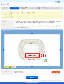 ご希望の席種・枚数・座席ブロックを選択し、「座席選択へ」ボタンを押してください。・・・(1)(2)