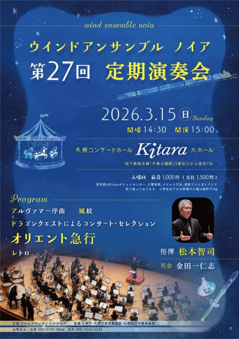 吹奏楽曲、クラシックアレンジ、ポップス、映画音楽など、幅広い年齢層に楽しんでいただける演奏会です。