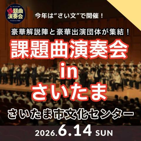 課題曲演奏会2026.各校が選んだ課題曲演奏と解説がコンクール会場で聴け6月14日はさい文に集合
