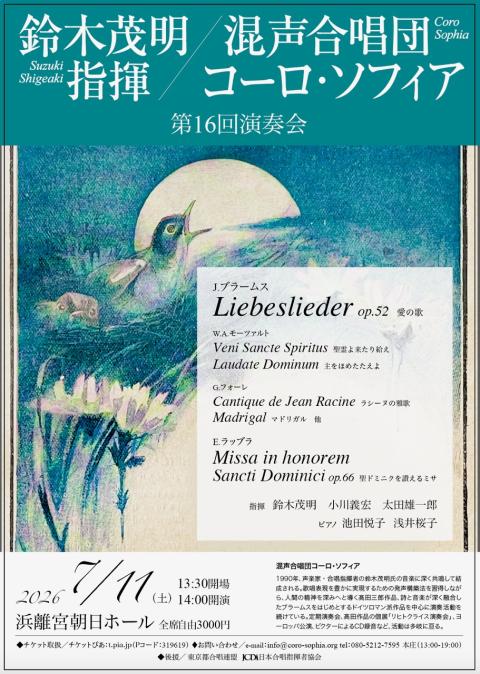 1990年設立。東京を中心に活動する混声合唱団コーロソフィアによる2年ぶりとなる定期演奏会