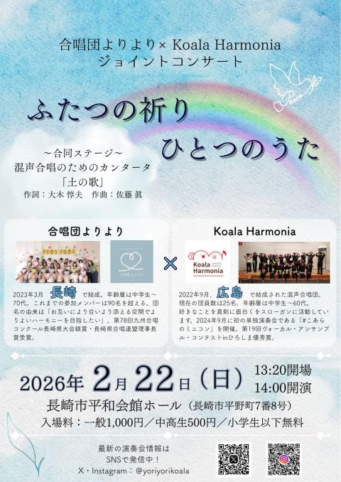 被爆地長崎・広島の合唱団合同で、定番の「大地讃頌」を含むカンタータ『土の歌』全7曲 他をお届けします