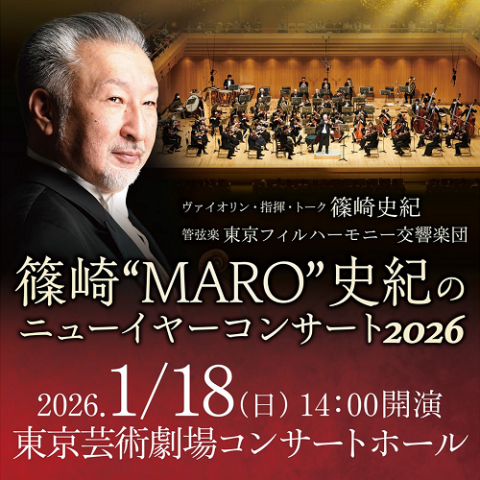MAROがお送りする華麗なるウィンナ・ワルツとウィーン伝統の祝祭の響き― 出演は篠崎史紀(ヴァイオリン・指揮・トーク)、東京フィルハーモニー交響楽団(管弦楽)。 1/18(日) 東京芸術劇場 コンサートホールにて開催!