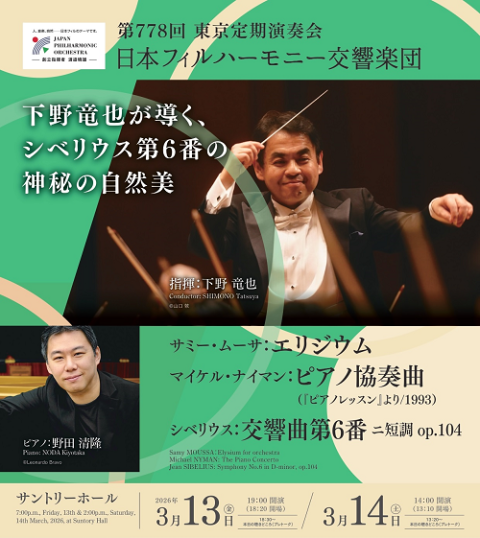 下野竜也が導く、シベリウス第6番の神秘の自然美─ 第778回東京定期演奏会は3/13(金)・14(土)サントリーホール 大ホールにて開催。