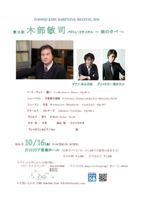 木部敏司バリトンリサイタル~秋の夕べ~ドイツ&日本歌曲/pf本山乃弘/vn桜井大士