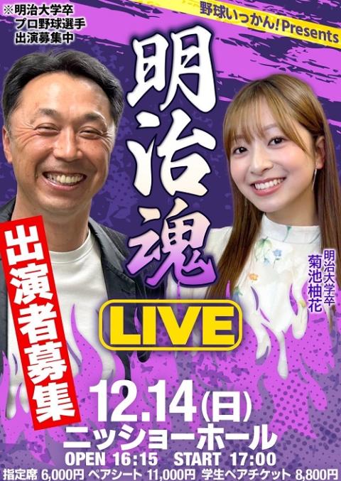 明治大学卒のプロ野球選手にスポットを当てた「明治魂LIVE」を12/14(日)、東京・ニッショーホールにて開催!