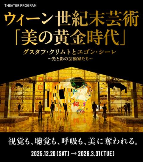 ウィーン・アール・ヌーヴォー建築や世紀末工芸の息吹、壮麗な楽曲とともに、クリムトの主要な名作約170点、シーレの魂を揺さぶる名作約110点と一体となる極上の没入体験。