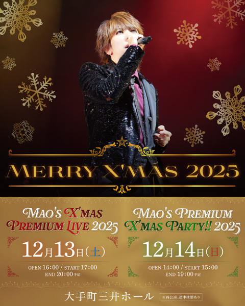 大手町三井ホールにて、クリスマス2DAYSイベント!12/13(土)は「Mao's X'mas Premium Live 2025」、12/14(日)は「Mao's Premium X'mas Party!! 2025」と題し2025年のマオの活動を振り返る打ち上げトークショーを開催!