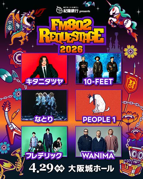 今年は4月29日(水・祝)に開催! FM802が毎年、大阪城ホールで開催しているライブイベント♪ キタニタツヤ、10-FEET、なとり、PEOPLE 1、フレデリック、WANIMAが出演。