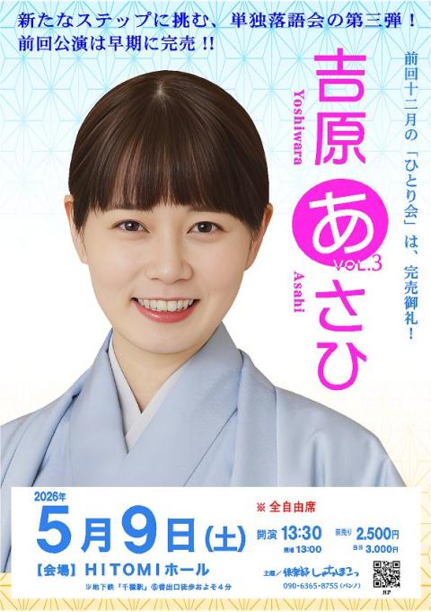 年一度、ライトでたっぷり彩り噺。演目は「付き馬」「お直し」他。皐月は白酒でお楽しみ。