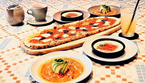 2020年7月開業「ぴあアリーナMM」に併設。NYスタイルの本格窯焼きピッツァが味わえるスペシャルセット。