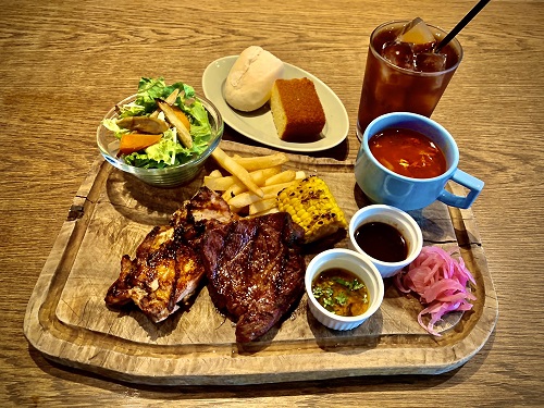 【対象メニュー】コンボアサードプレート(牛肉・鶏肉・グリル野菜・サラダ・ライスorパン)、ドリンク