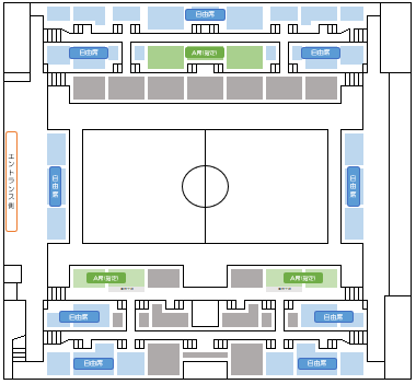 ・フットサルコートと座席が非常に近いため、勢いのあるボールが観客席に飛び込むことがあります。障がいのある方や妊娠中の方、小さいお子様をお連れの方は十分にご注意ください。