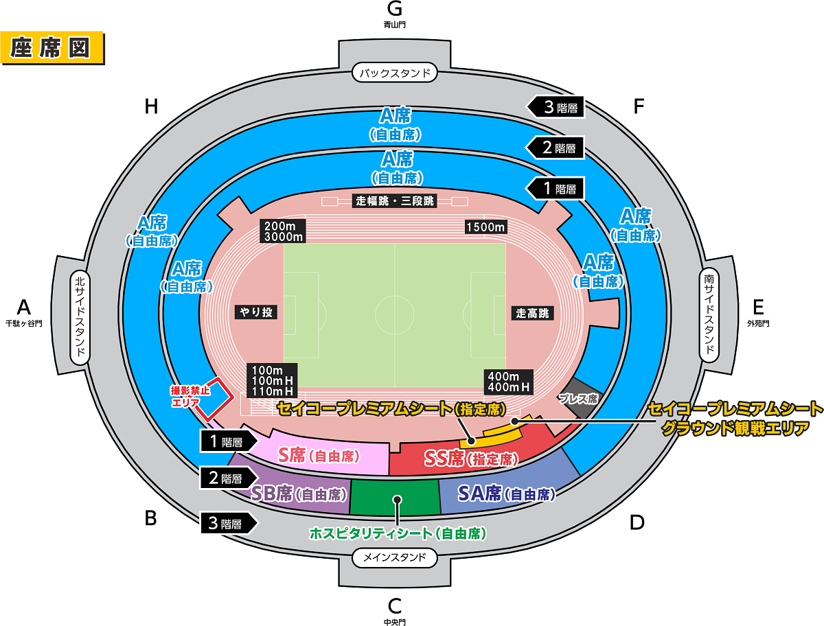 ※セイコープレミアムシート、ホスピタリティシート、SS席、S席、SA席、SB席の購入でA席での観戦も可能です。