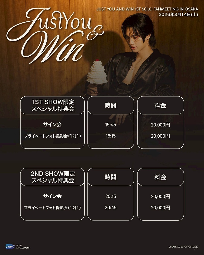 本公演チケットをご購入いただいた方は、該当公演(1ST SHOW/2ND SHOWそれぞれ)終演後に実施される「スペシャル特典会(サイン会・プライベートフォト撮影会)」にお申し込みいただけます。