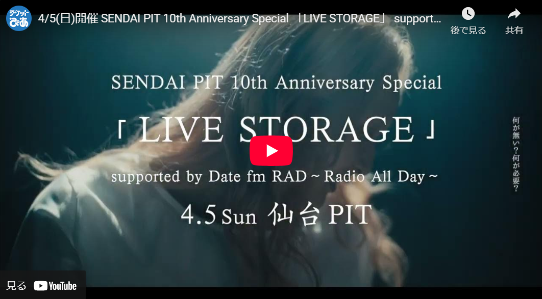 一般発売 / SENDAI PIT 10th Anniversary Special 「LIVE STORAGE」 supported by Date fm RAD~Radio All Day~