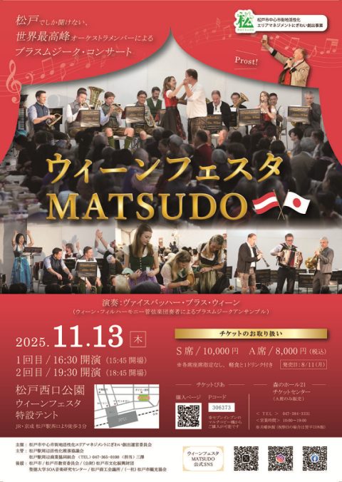 世界中で松戸でしか聞けない、ウィーン・フィルハーモニー管弦楽団メンバーによるブラスムジーク(吹奏楽)・コンサート。おかげさまで今年で5回目を迎えることができました。ウィーン・フィルハーモニー管弦楽団のメンバーが、燕尾服ではなく、民族衣装“レーダーホーゼ”や”ディアンドル”姿で演奏するのも、日本ではここでしか見られません。
