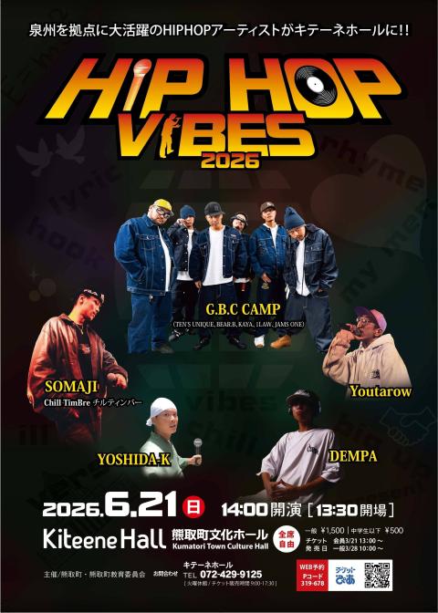 泉州を拠点に大活躍のHIPHOPアーティストG.B.C CAMP,SOMAJI(Chill TimBre),Youtarowがキテーネホールに!!