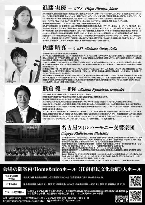 3月28日に続き、名古屋フィルハーモニー交響楽団を招聘して愛知県江南市のHome&nicoホール 江南市民文化会館 で開催する「こうなん名フィルコンサート2026 デュアルコンチェルトシリーズ4 ピアノとチェロ 2つの協奏曲・2人のソリスト」2026年2度目の公演です。