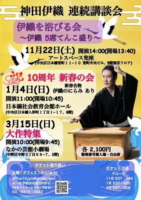チケットに記載の整理番号順に入場で、自由席となります。会場はアートスペース兜座5階演芸フロアです!