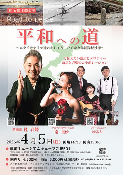 Road to Peace 平和への道今伝えたい落語とメロディー ~ニライカナイで逢いましょう ひめゆり学徒隊秘抄禄~ 落語と音楽のコラボイベント