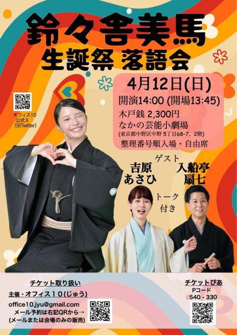 チケットに記載の整理番号順に入場で、自由席となります。オフィス10での販売は会場での直販のみ。