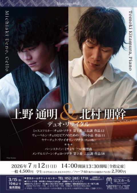 学生券・セット券・プレミアムシートは、宗次ホールチケットセンターでのみ販売いたします。未就学児童は入場不可。営利目的の転売は禁止します。公演開催についての最新情報(中止・振替等について)は宗次ホールまたは宗次ホール公式ホームページ https://munetsuguhall.com/ にてご確認ください。
