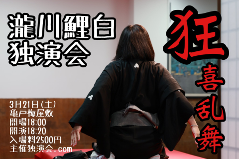 瀧川鯉白独演会です。鯉白さんの狂喜乱舞をご覧ください。