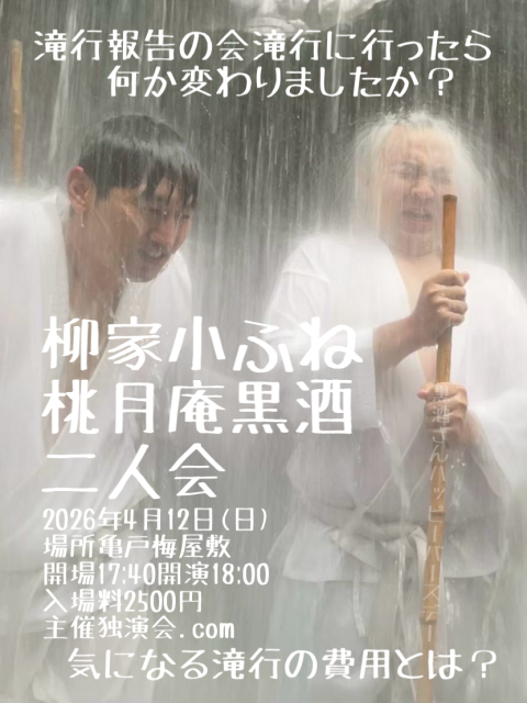 柳家小ふね桃月庵黒酒二人会です。滝行報告の会です。