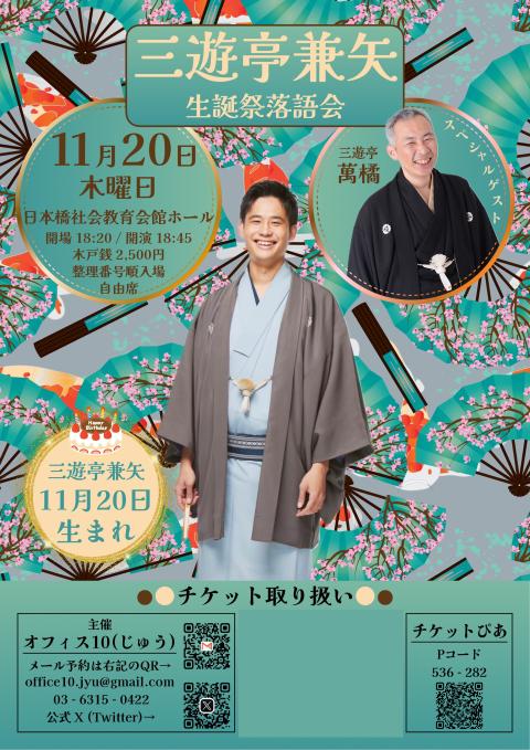 兼矢さん誕生日当日の生誕祭落語会!スペシャルゲストに萬橘師匠!