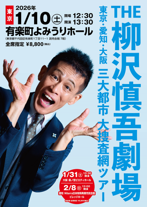 自身初の単独ライブ追加公演が2026年1~2月東京・愛知・大阪の3都市で開催。柳沢慎吾の、ひとり・全国・「大捜査網」!