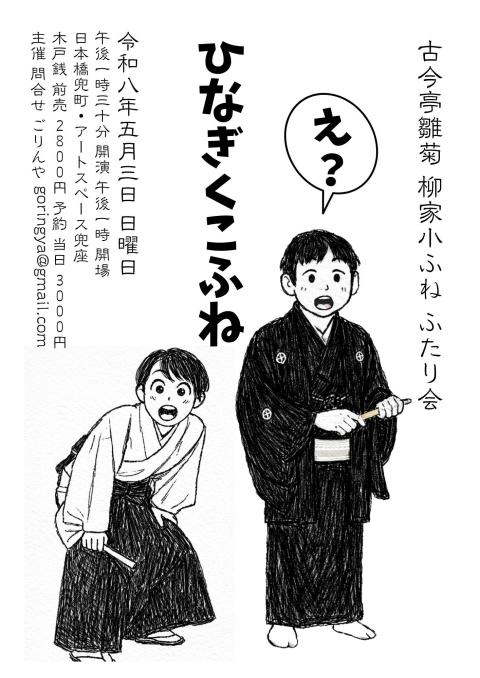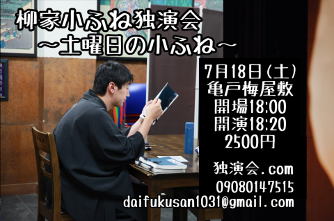 柳家小ふね独演会です。いま最も勢いのある落語家です。
