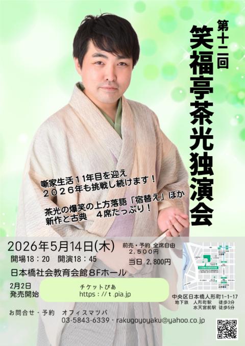 大人気二ッ目 笑福亭茶光のホール落語会です