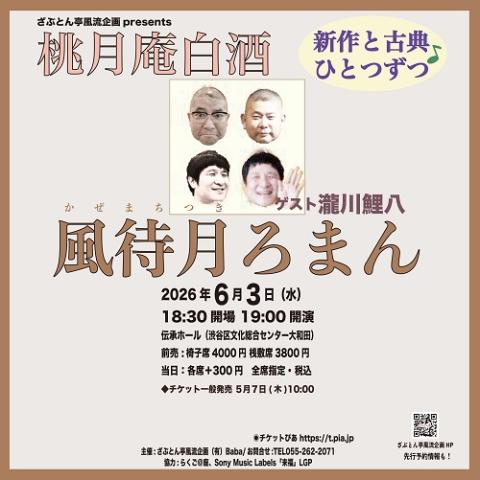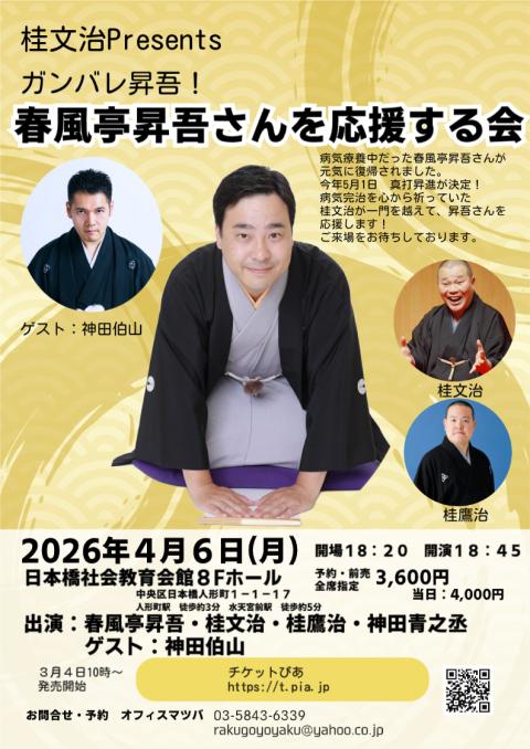 落語協会の令和8年春の真打昇進。柳家圭花 改メ 二代目 華形家八百八、三遊亭ふう丈 改メ 二代目 三遊亭円丈、柳家小はぜ 改メ 三代目 柳家小はん、三遊亭伊織 改メ 三遊亭歌奈女、入舟辰乃助 改メ 八代目 船遊亭扇歌の披露興行を開催。