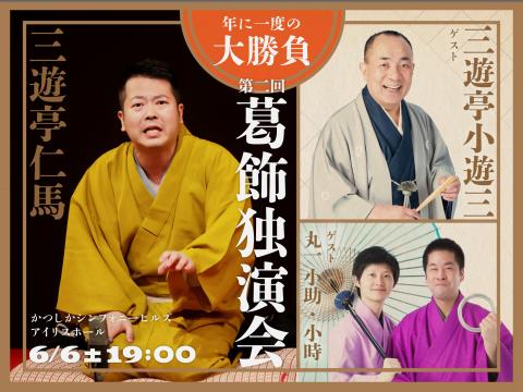 葛飾の落語家・三遊亭仁馬、ゲストに三遊亭小遊三、丸一小助・小時を迎え年に一度の大勝負に挑む。