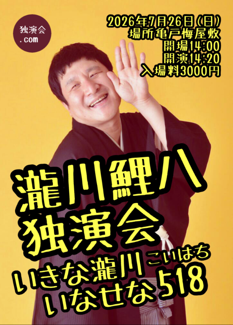 いなせな瀧川鯉八独師匠の独演会です。