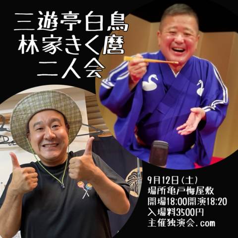 三遊亭白鳥林家きく麿二人会です。トークコーナーあり。