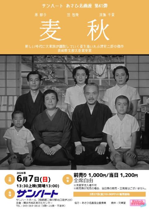 新しい時代に大家族が離散していく姿を描いた、小津安二郎の傑作を上映。