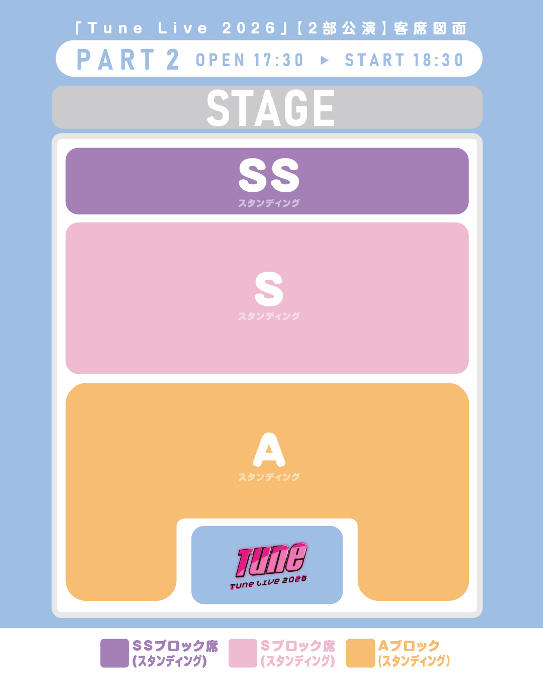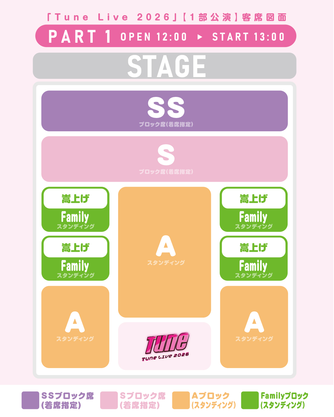 ドリンク代別途必要。未就学児のみでの入場不可。4歳以上要チケット。再入場不可。1部と2部は出演者及びチケット料金が異なりますのでご注意ください。客席を含む会場の映像・写真が公開されることがあります。開催公演に関しては理由の如何を問わず、チケット購入後のキャンセル・変更・払い戻しは一切できません。1部公演(Aブロック/Familyブロック)はスタンディングでのご観覧。Familyブロックは前方半分を嵩上げしております。お子さまを前方嵩上げに、親御さんはその後方でスタンディンでのご観覧。成人のみでFamilyブロックの購入不可。2部公演はすべてスタンディングでのご観覧となります。