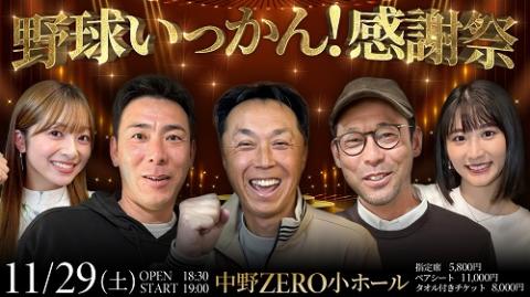 YouTubeチャンネル「野球いっかん!」の感謝祭を11/29(土)、なかのZERO 小ホールにて開催!