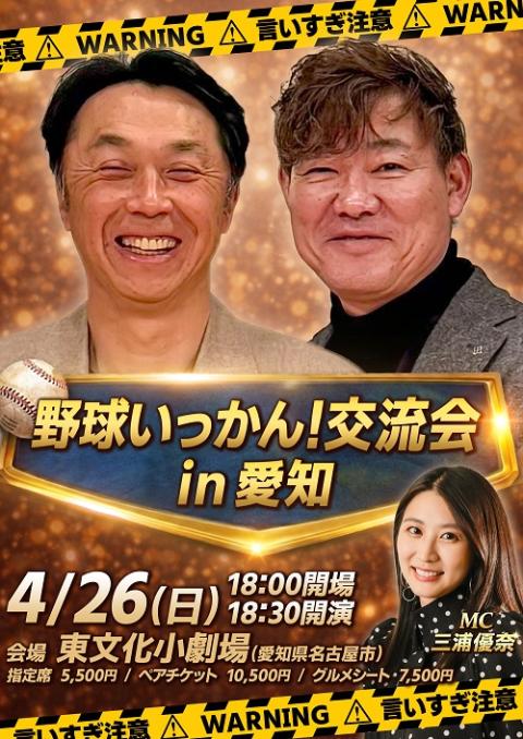 YouTubeチャンネル「野球いっかん!」のスペシャル交流イベント!出演は宮本慎也、福留孝介、三浦優奈(MC)。