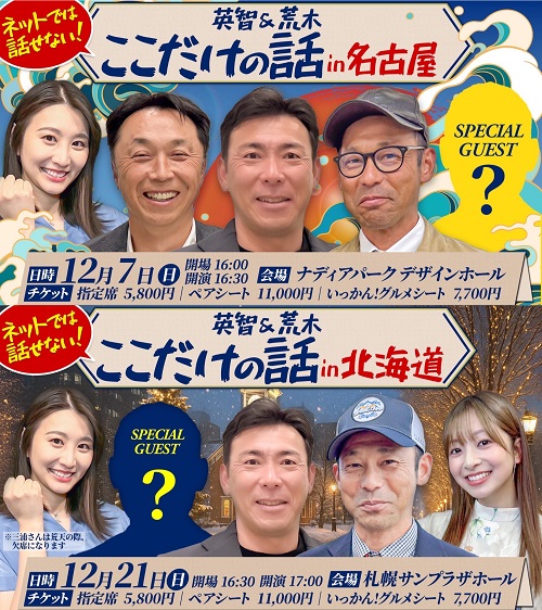 野球YouTube番組「里崎チャンネル」の里崎智也&袴田彩会による納会を開催!東京公演は12/14(日)ニッショーホールにて、北海道公演は12/21(日)札幌サンプラザ コンサートホールにて実施。