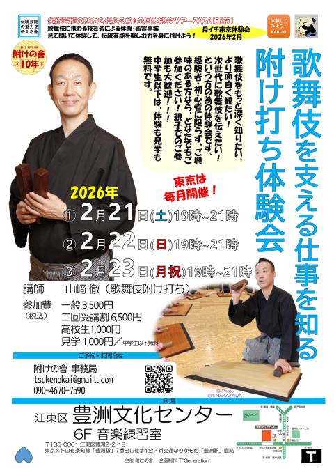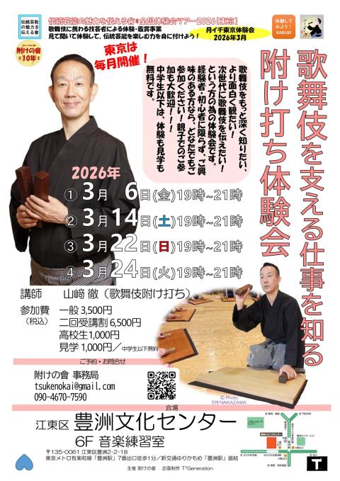 歌舞伎に携わる附け打ちさんが全国を巡って、歌舞伎を紹介する体験会ツアーです!