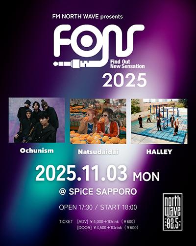 FM NORTH WAVE主催のライブイベント「FONS」、再始動!“新感覚を見つけ出す”をコンセプトに、今注目のアーティストが11/3(月・祝)札幌に集結。9回目となる今回は、OchunismとNatsudaidai、HALLEYが出演!