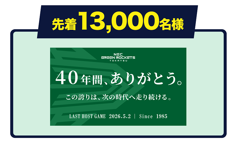 5/2(土)は、「NECグリーンロケッツ東葛」として戦うレギュラーシーズン最後のホストゲーム。かけがえのない思い出が作れるイベントも実施。ゴールデンウイークを家族で楽しむもよし、NECラグビーの歴史に触れるもよし、楽しみ方はあなた次第。会場で観戦しよう!