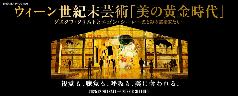 ウィーン・アール・ヌーヴォー建築や世紀末工芸の息吹、壮麗な楽曲とともに、クリムトの主要な名作約170点、シーレの魂を揺さぶる名作約110点と一体となる極上の没入体験を。